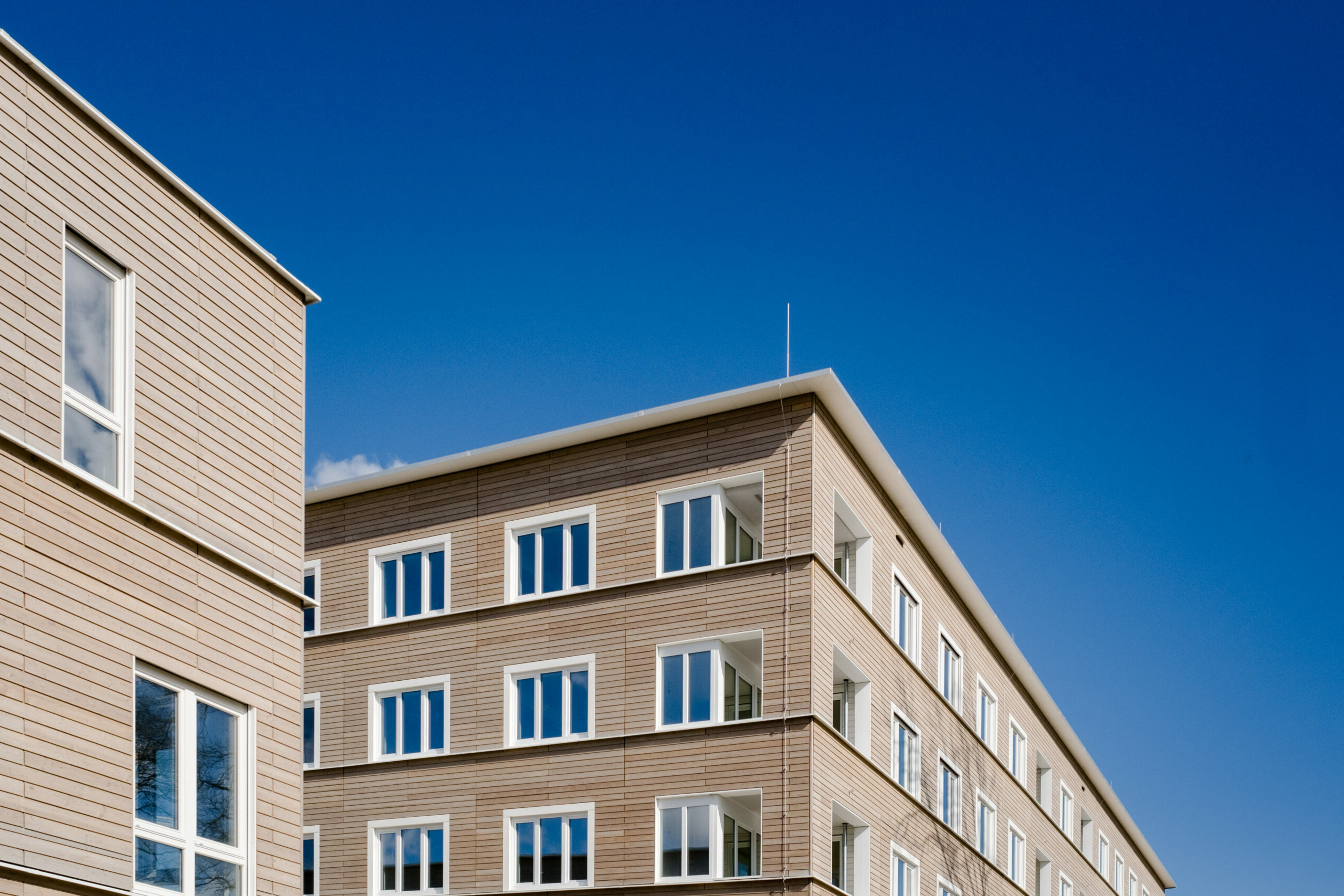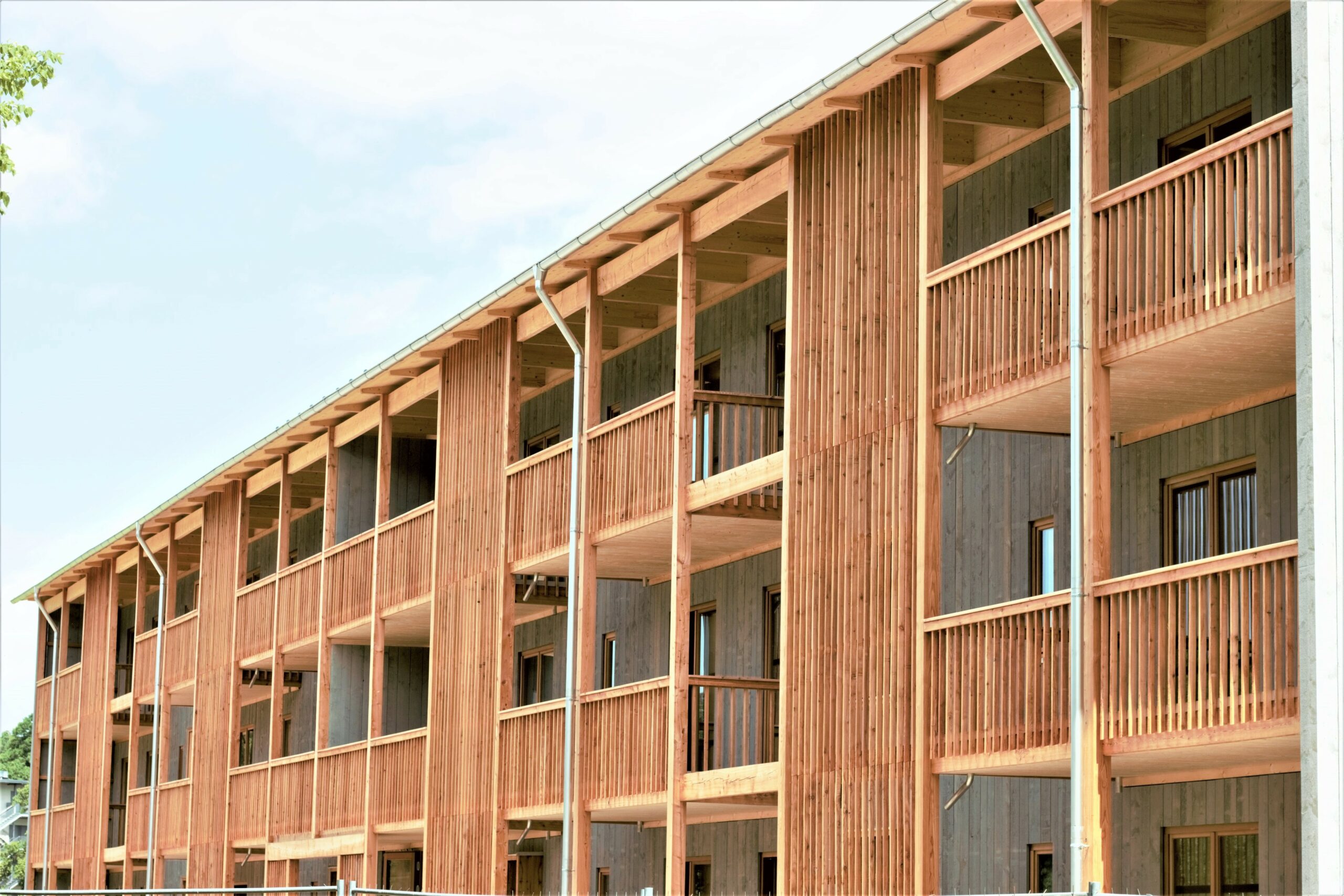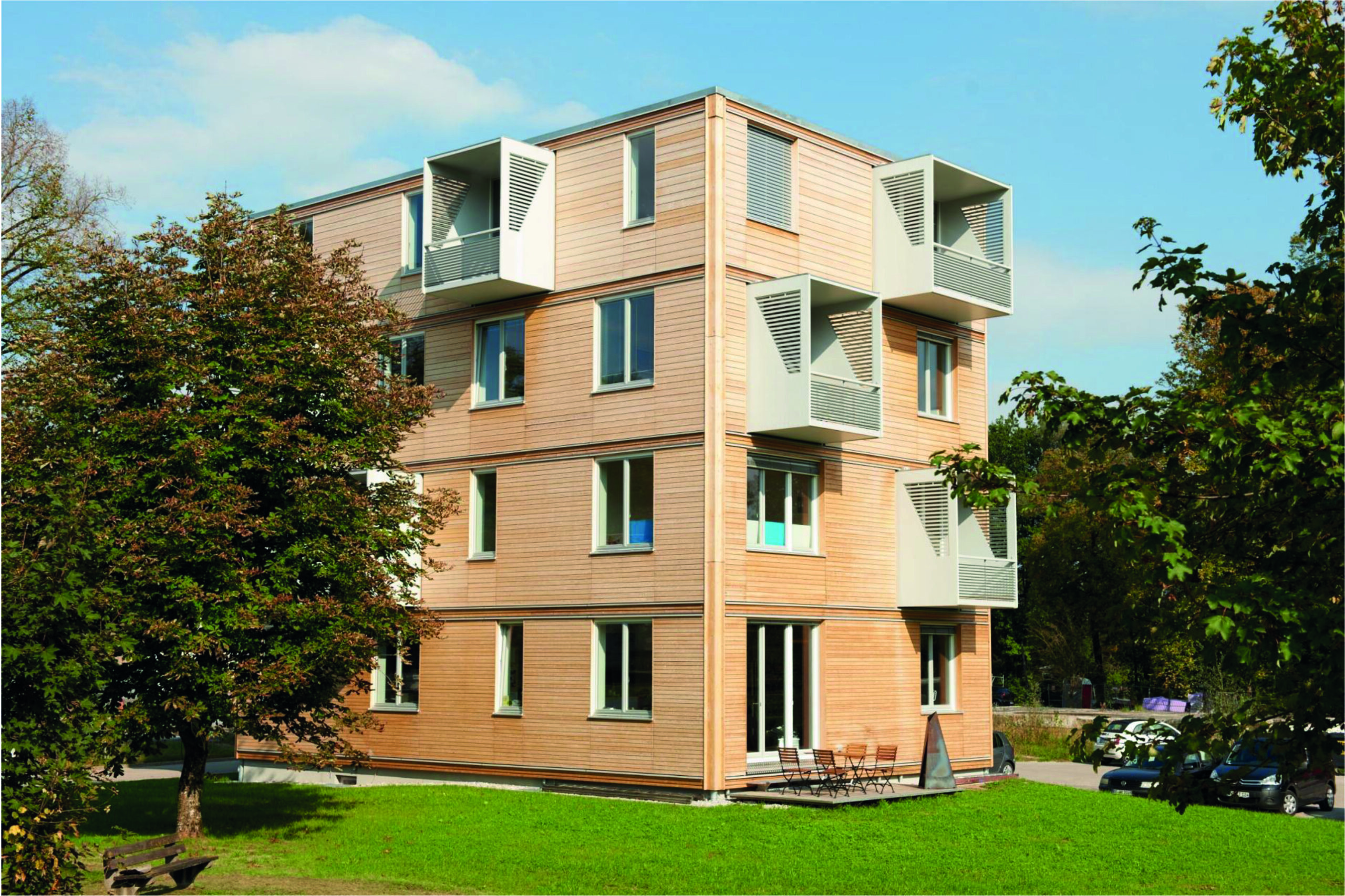 In unserem Holzwerk fertigen wir auch Holzfassaden für Bestandsgebäude. Diese kommen in der seriellen energetischen Sanierung insbesondere nach Energiesprong-Prinzip zum Einsatz.