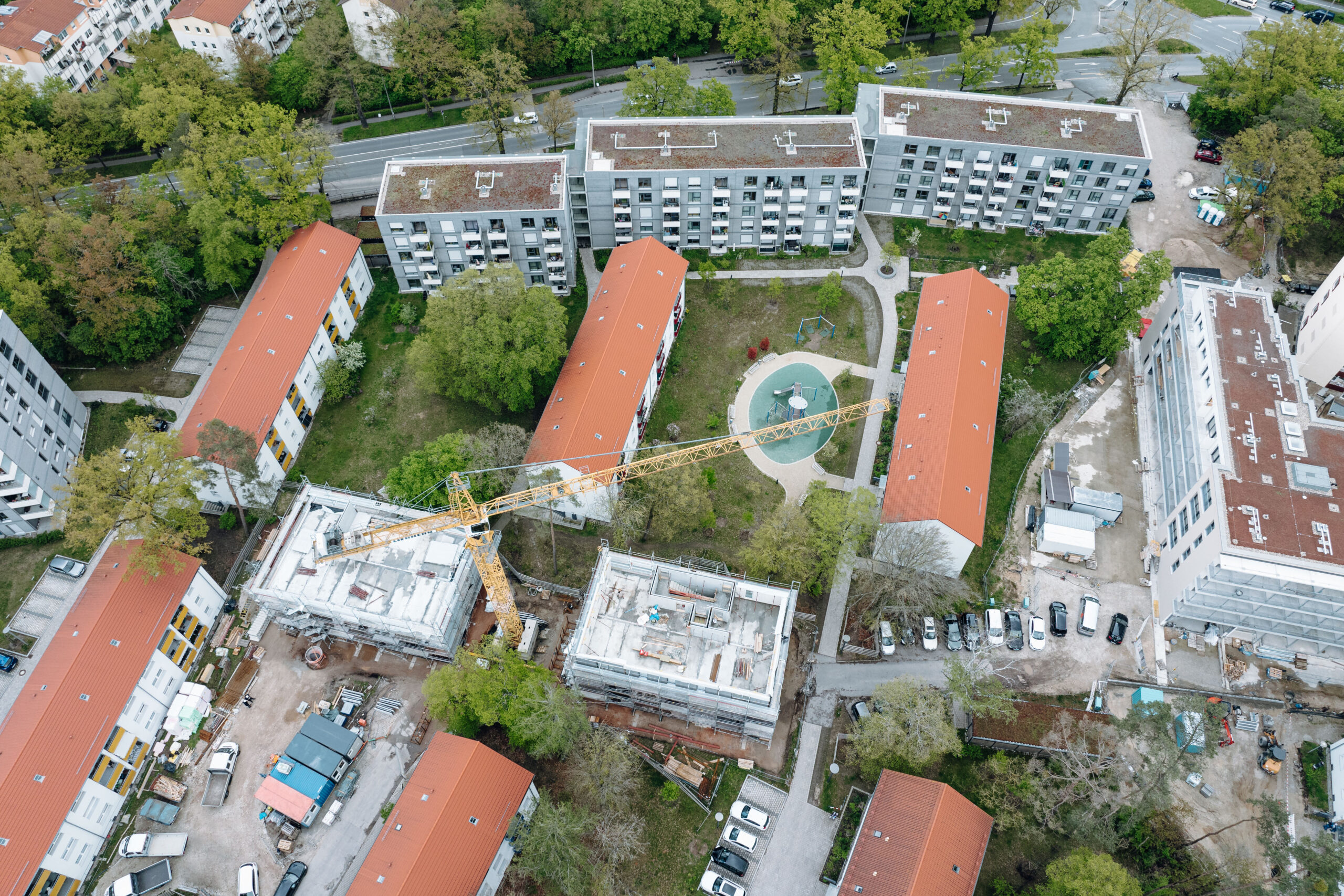 - Zwei viergeschossige, voll unterkellerte Wohngebäude in Holzhybrid-Bauweise