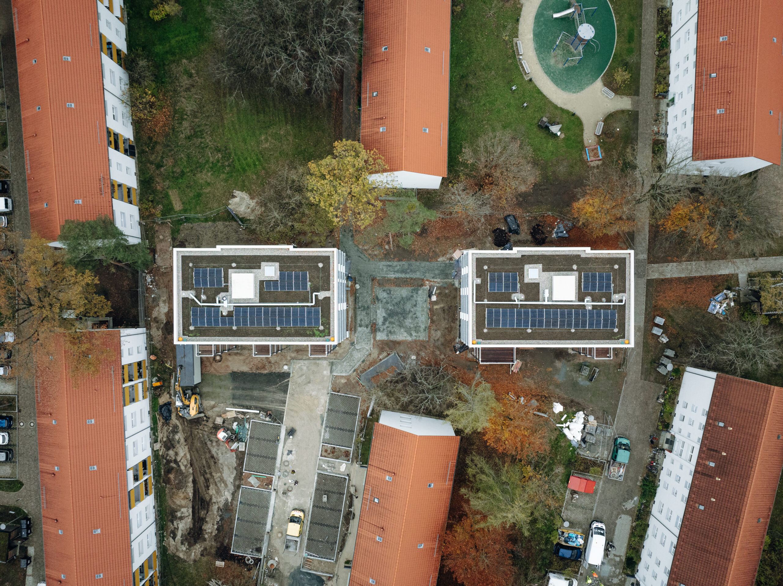 | Leistungsumfang | Neubau von zwei Wohngebäuden in Holzhybrid-Bauweise mit vorgefertigten Holzwandelementen und Fertigbädern aus eigener Produktion |