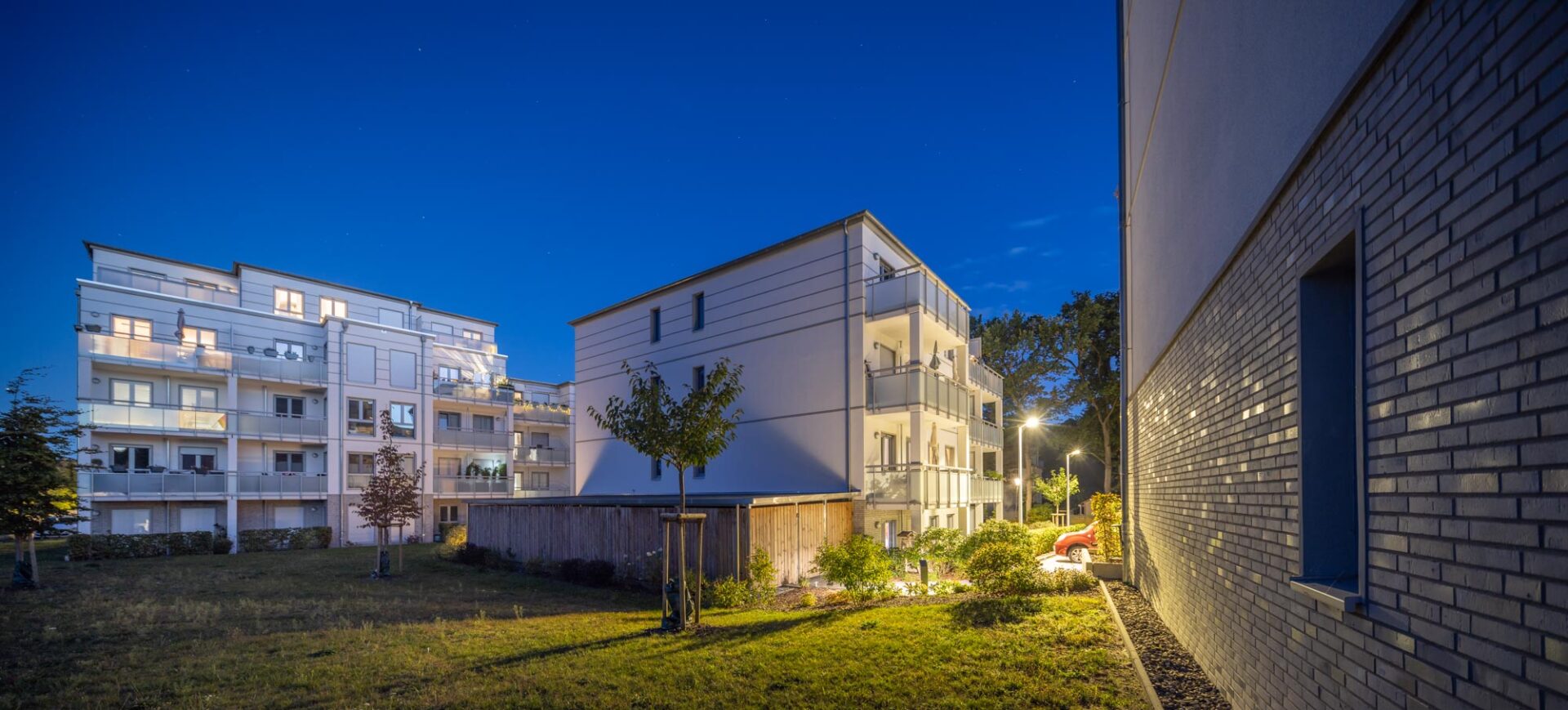 Besonders hervorzuheben bei den fünf Gebäuden, in denen insgesamt 90 Mietparteien untergebracht sind, ist das innovative Energieversorgungskonzept. So verfügen etwa die mit Geothermie gespeisten Wärmepumpen über eine Rückkühlung und sind ans Nahwärmenetz angeschlossen. Dazu kommen die Photovoltaik-Dachanlagen sowie die Ladesäulen für Elektromobilität, die die Umweltfreundlichkeit der Neubauten weiter steigern.