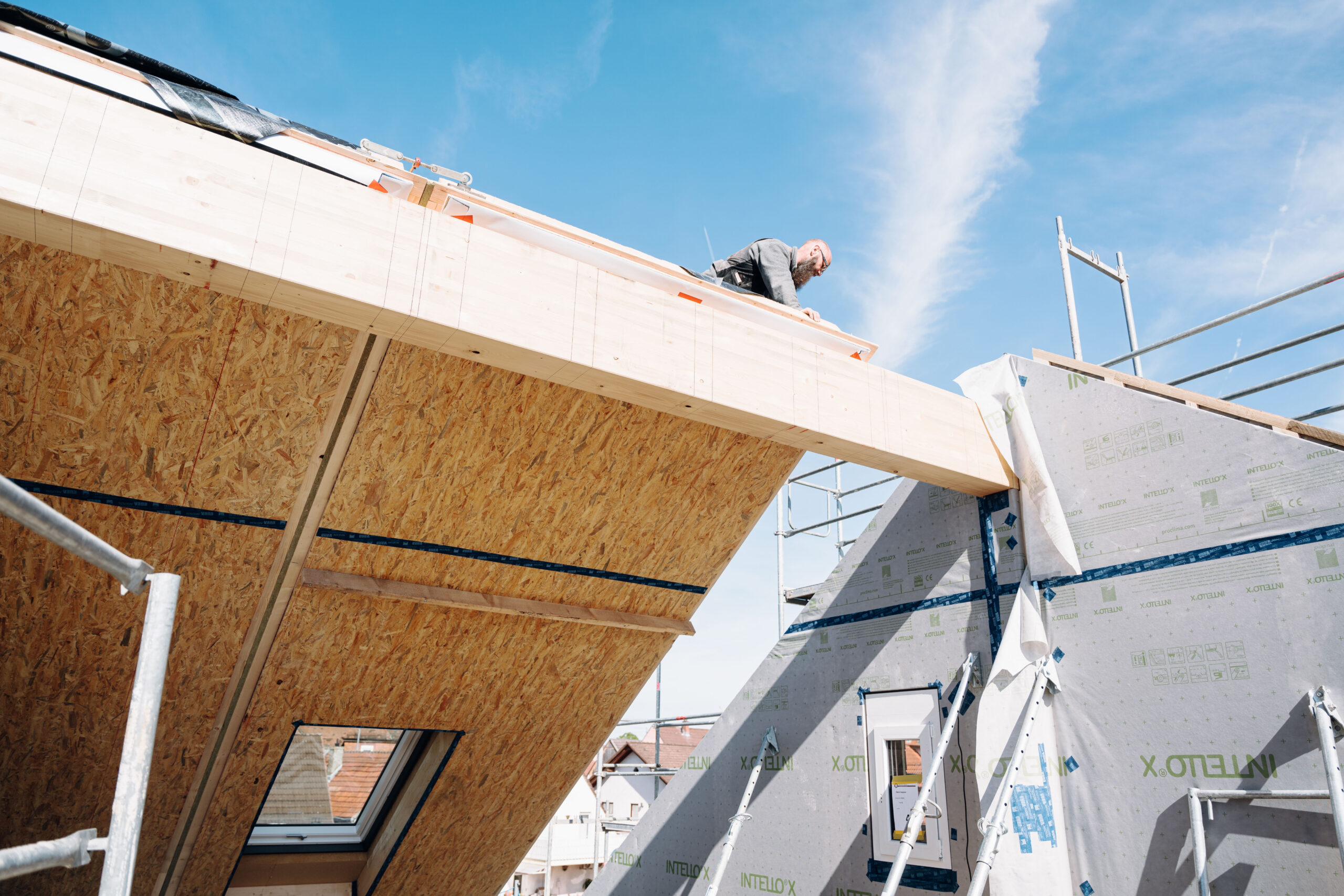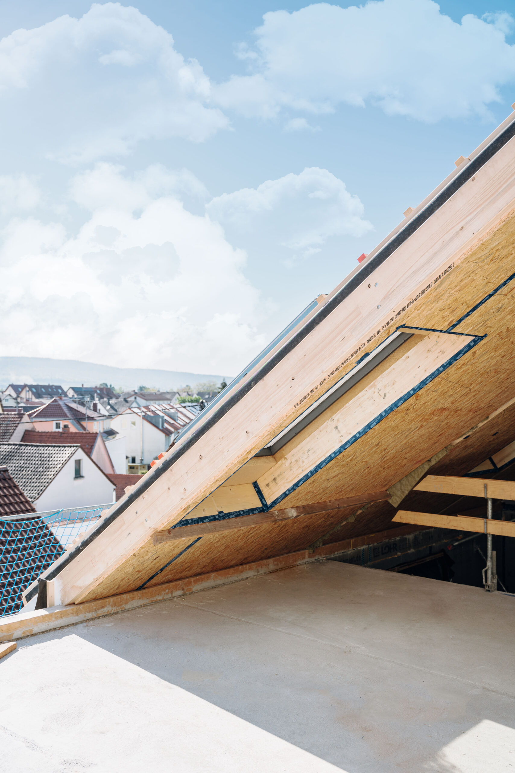 B&O Bau hat in unter einem Jahr Bauzeit ein Mehrfamilienhaus in Holzhybrid-Bauweise errichtet – mit der Besonderheit, dass erstmals auch vorgefertigte Satteldachelemente auf die Baustelle geliefert und in kürzester Zeit auf das Dachgeschoss montiert wurden. Die serielle Bauweise unter Einsatz von unter Optimal-Bedingungen passgenau vorgefertigten Holzwandelementen, Systemdecken sowie Fertigbädern aus Eigenproduktion eignet sich hervorragend für die Nachverdichtung in Wohngebieten. In diesem Falle wurde eine Baulücke zwischen bestehenden Mehrfamilienhäusern genutzt. Während die Nachbarn unter weniger Baustellenlärm, weniger großem Gerät und weniger Schmutz leiden, punktet die Baufirma auf der Baustelle vor allem durch Schnelligkeit: In Heidelberg konnte pro Woche ein neues Stockwerk hochgezogen werden. Auch die Tiefgarage konnte B&O Bau, die als Generalübernehmer fungierte, zeitgerecht fertigstellen und schlüsselfertig übergeben. Eine weitere Neuheit: Als wichtige Maßnahme zur Qualitätssicherung wurden hinter den Fertigbädern Feuchtigkeitssensoren verbaut, um mögliche Wasserschäden frühzeitig zu erkennen.