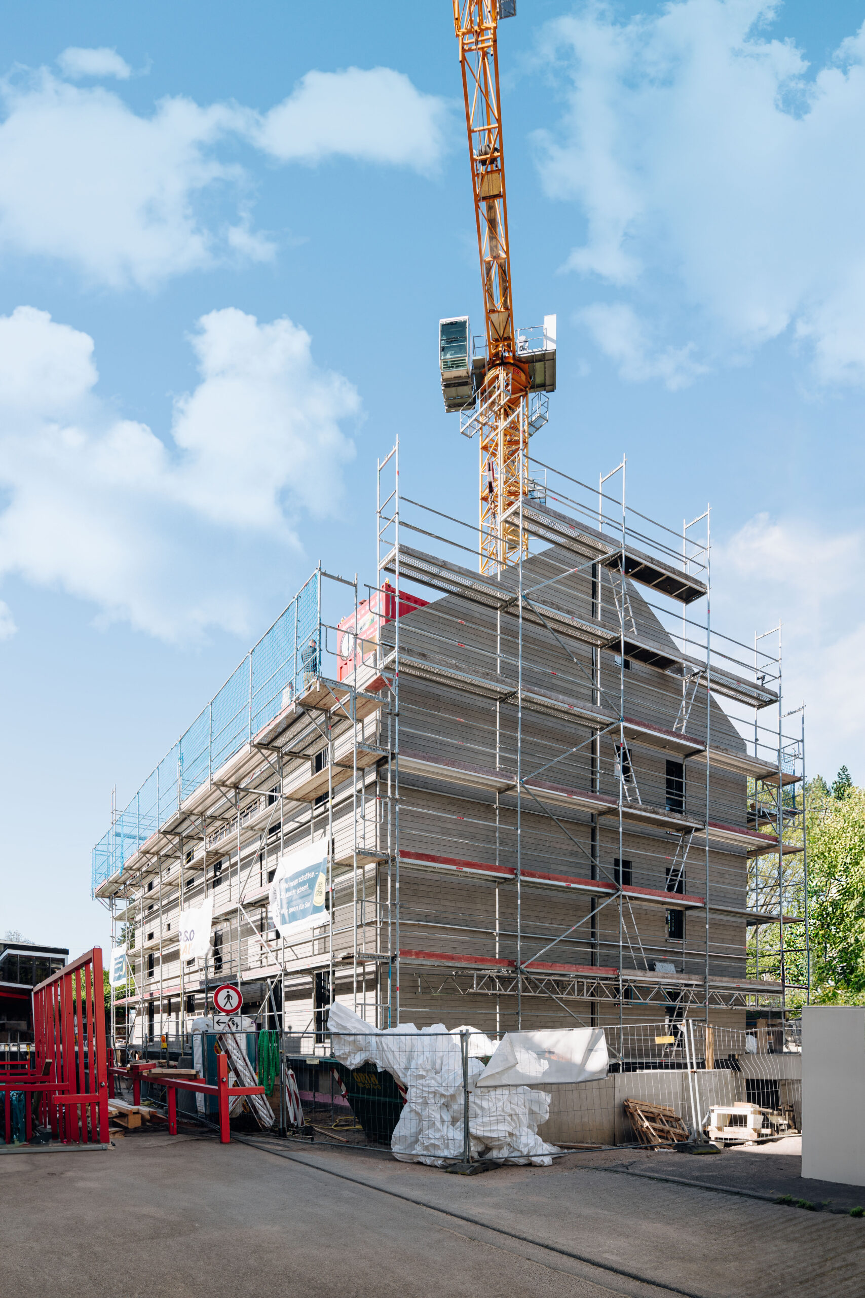 | Leistungsumfang | Neubau eines Mehrfamilienhauses in Holzhybrid-Bauweise, Balkonanlage, Fertigbadzellen aus unternehmenseigener Produktion, Bau einer Tiefgarage |