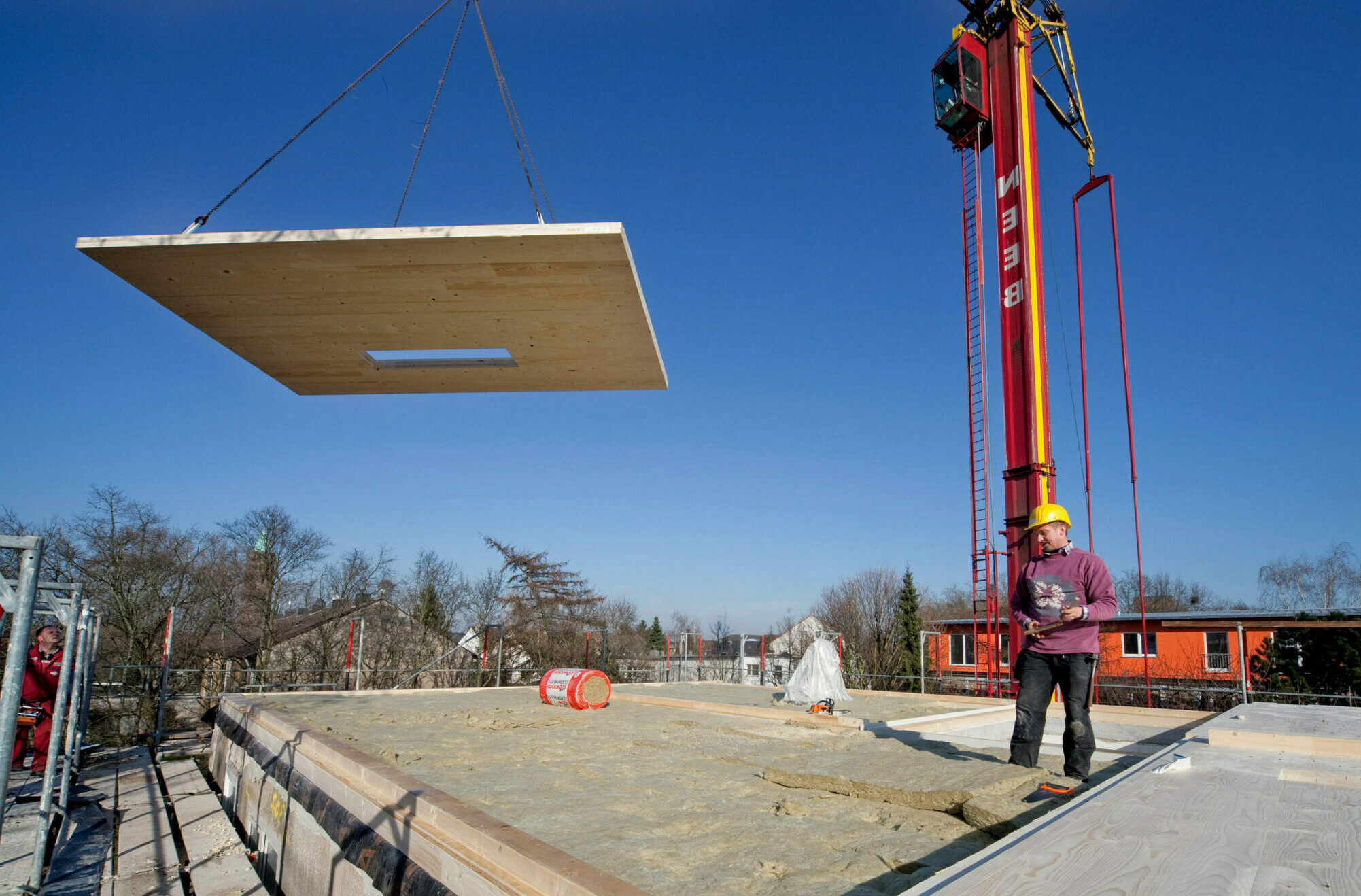 Da die Tragfähigkeit der vorhandenen Bauteile meist ausgereizt und Gebäude nicht für größere Lasten ausgelegt sind, setzt B&O Bau seit vielen Jahren auf leichte Aufstockungen in Holzbauweise. Der Baustoff hat eine hohe Festigkeit, aber ein niedriges Eigengewicht.