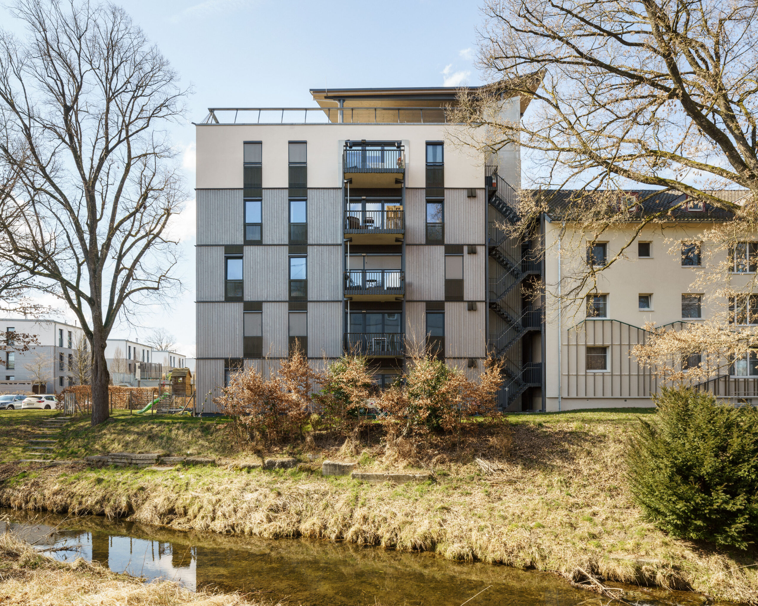 Quartiersnachverdichtung Jaminpark – Zwei Systemhäuser in Holzhybrid-Bauweise