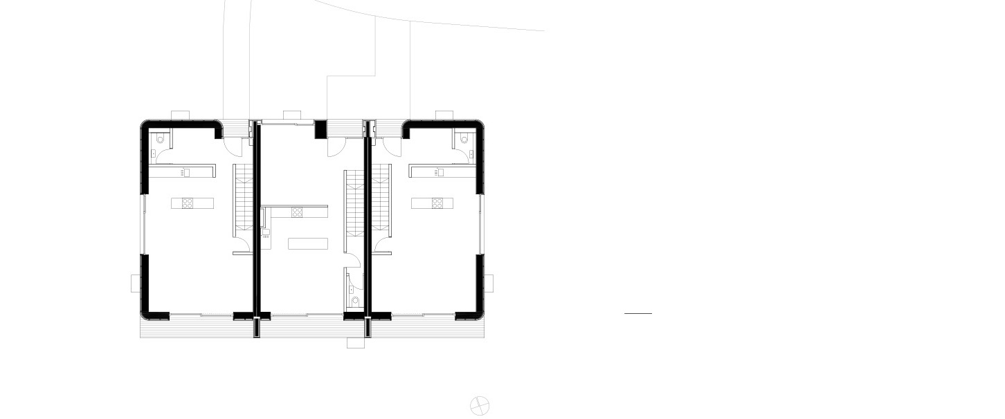 | Typologie | Zwei identische, dreigeschossige Holzbauten, je 3 Wohneinheiten, geschindelt, Flachdach |