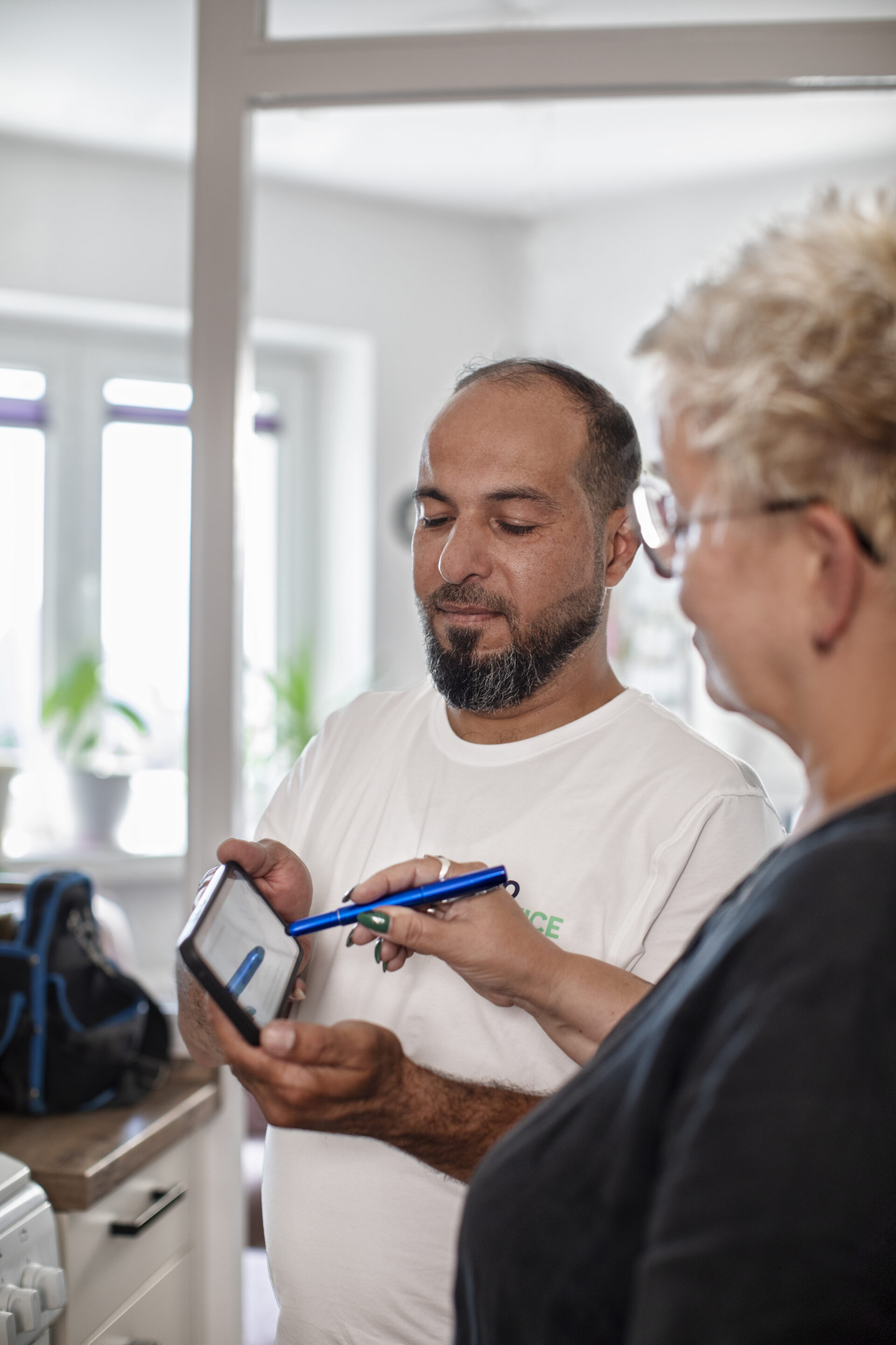 Nach dem Einsatz unterschreiben Sie papierlos direkt auf dem Endgerät unseres Handwerkers – schonend für die Umwelt und Ihr Zeitbudget.